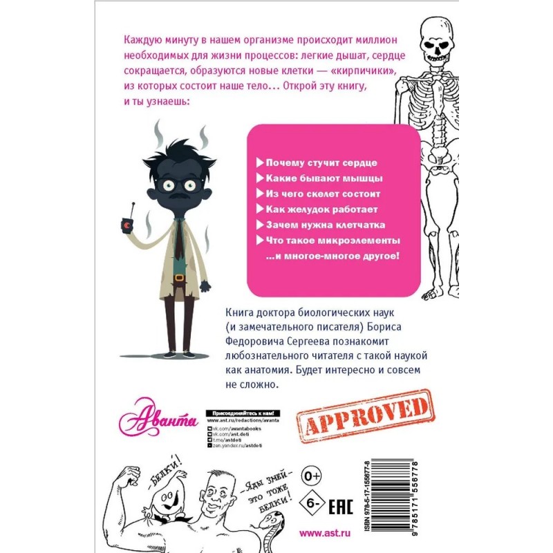 Книга доктора биологических наук Бориса Федоровича Сергеева познакомит читателей с такой наукой как анатомия, расскажет, как устроен человеческий организм, и ответит на самые разные вопросы: отдыхает ли сердце, как мы видим и слышим, что такое красные и белые мышцы, зачем нужны микроэлементы…Для среднего школьного возраста.
