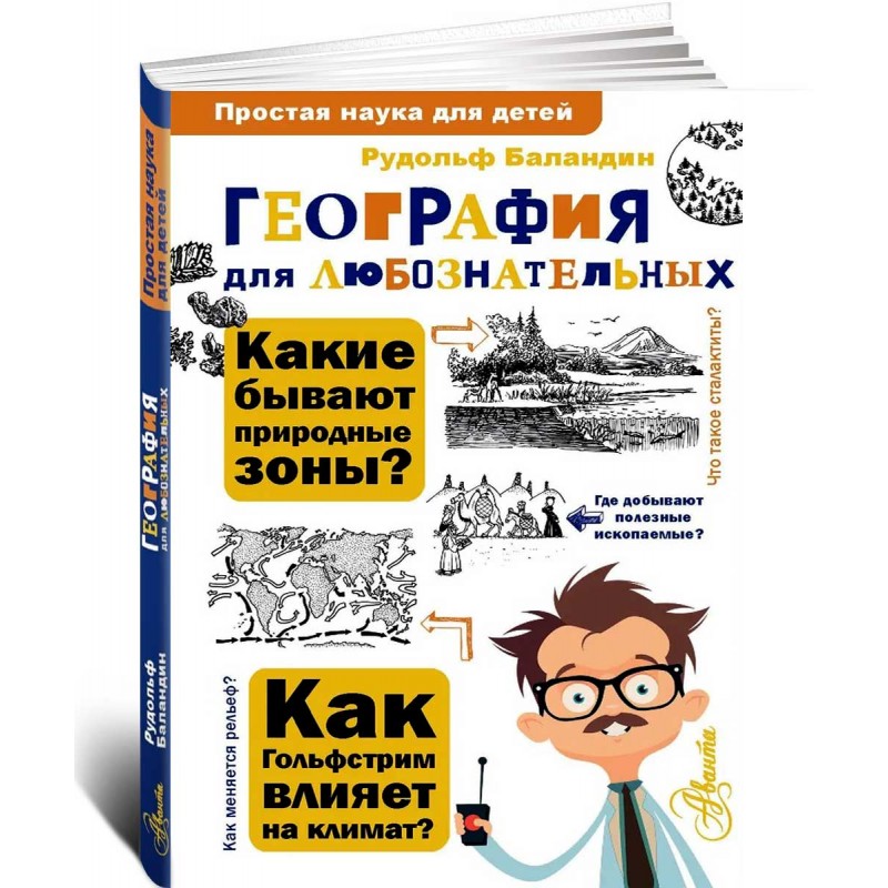 Книга советского геолога и гидрогеолога Рудольфа Константиновича Баландина "География для любознательных" познакомит читателя с целым комплексом наук, изучающих природу, климат, рельеф Земного шара. Вы узнаете о подвигах землепроходцах, осваивающих территорию Сибири, о полезных ископаемых, хранящихся в недрах земли, о том, почему возникали горы и равнины, почему Южный полюс холоднее Северного, что такое техногенный ландшафт, как добиться процветания своей страны и еще о многом другом. Для среднего школьного возраста.