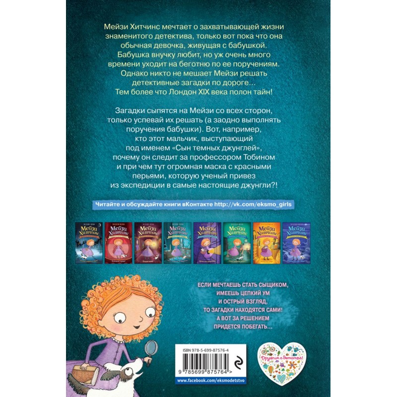 Загадки сыпятся на Мейзи со всех сторон, только успевай их решать (а заодно выполнять поручения бабушки). Вот например, кто этот мальчик, выступающий под именем "Сын темных джунглей", почему он следит за профессором Тобином, и причем тут огромная маска с красными перьями, которую ученый привез из экспедиции в самые настоящие джунгли?!