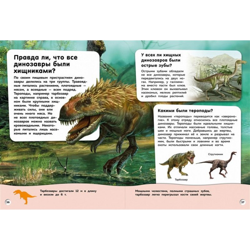Хищные и травоядные, крохотные и громадные, шипастые и клыкастые – какие только динозавры не обитали на нашей планете! В этой книге ты найдёшь ответы на самые интересные вопросы о доисторических рептилиях. Узнай, как они выглядели, где жили, чем питались и как охотились.