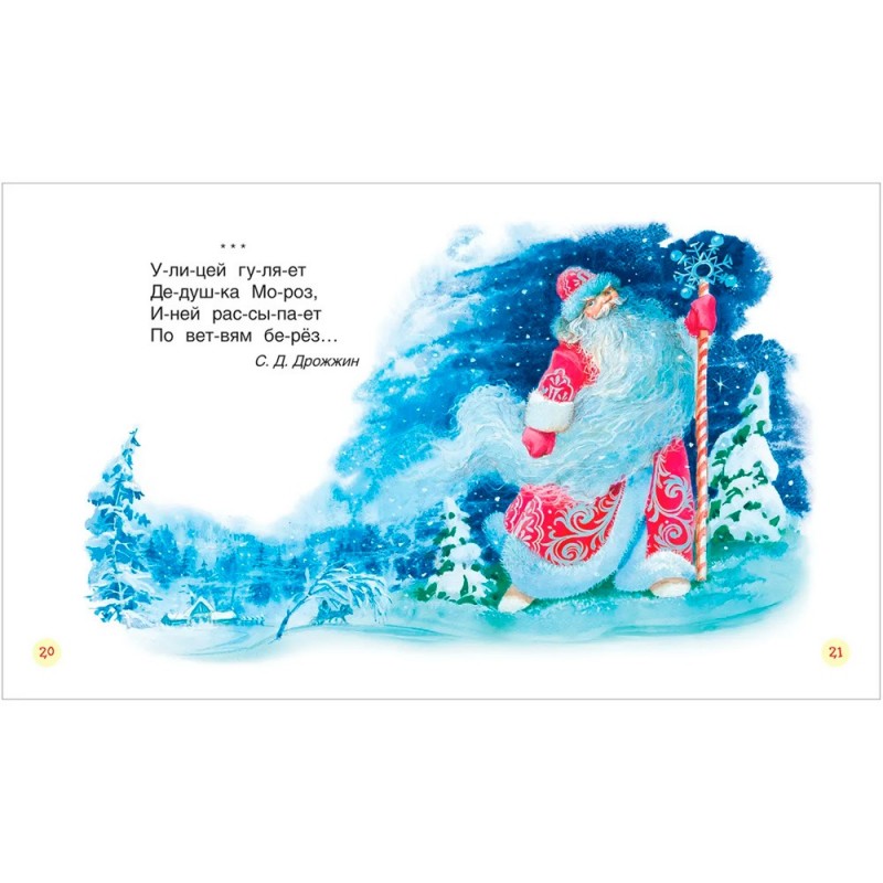 • Крупный шрифт, поделенные на слоги слова, проставленные знаки ударения, разбитый на небольшие отрывки текст и красочные иллюстрации помогут малышу с удовольствием включиться в процесс чтения.