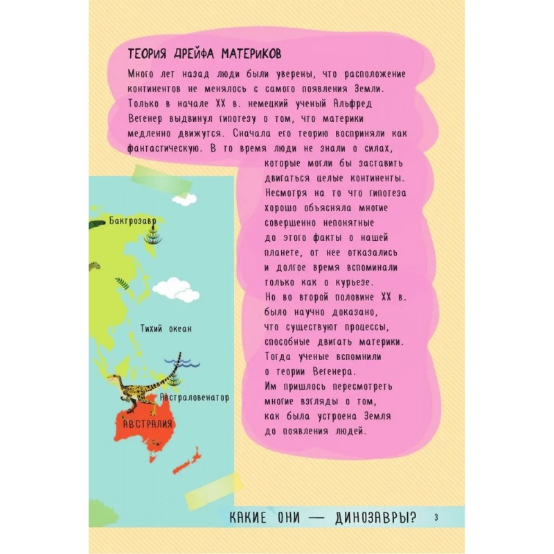 Хочешь знать все самое интересное о  динозаврах — древних животных, населявших нашу планету сотни миллионов лет назад?  Значит, эта книга как раз для тебя. На ее страницах представлены  гигантские ящеры высотой с трехэтажный дом и небольшие рептилии размером с голубя; жестокие хищники, поедающие даже своих собратьев, и мирные растительноядные динозавры. Короткие, но исчерпывающие тексты и множество ярких иллюстраций дадут представление о внешем виде этих загадочных животных, а невероятные факты о их жизни поразят твое  воображение. Поверь, скучно не будет!