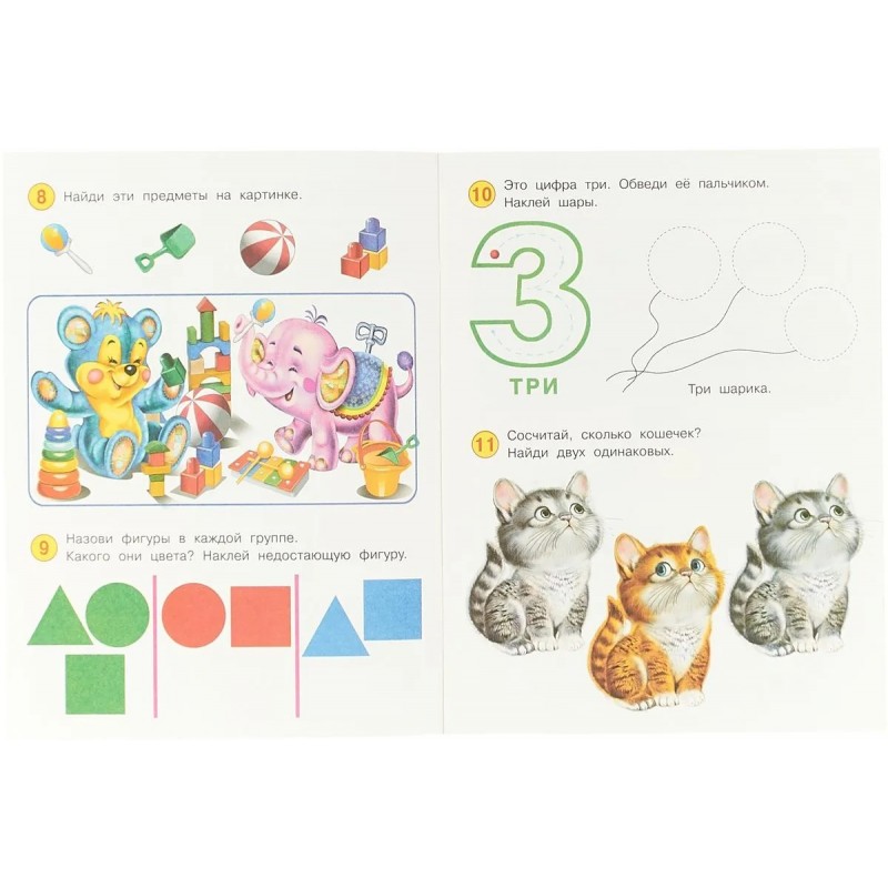 Книжка с развивающими заданиями и наклейками для детей 2-3 лет.