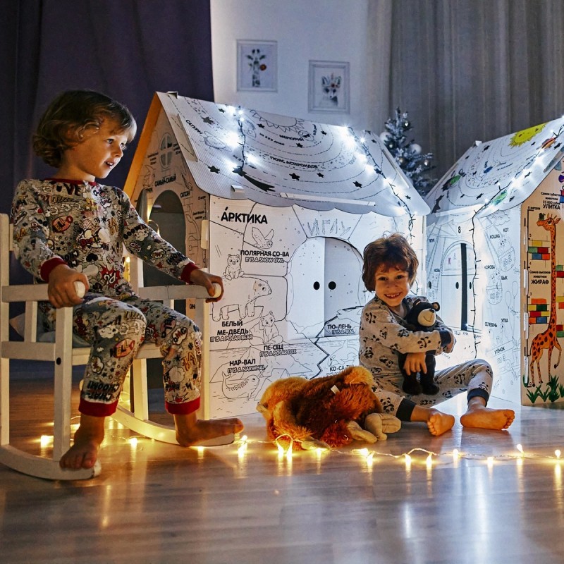 Домик изготовлен из картона - безопасного для окружающей среды материала, который можно сдать в переработку.