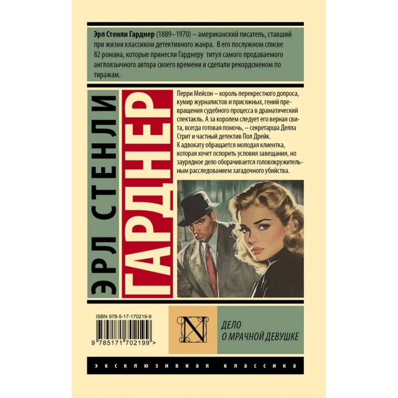 Классика американского детектива — теперь в удобном карманном формате и в привычном оформлении серии «Эксклюзивная классика». Роман из цикла о расследованиях адвоката Перри Мейсона. Перри Мейсон появляется более чем в 80 романах, суммарный тираж которых превышает 300 000 000 экземпляров. Романы цикла неоднократно экранизировались. Перри Мейсон — необычный адвокат. Он не только блестяще защищает своих подопечных в суде, но и собственноручно проводит расследование преступлений, в которых их обвиняют. А помогают ему в этом верная секретарша Делла Стрит и частный детектив Пол Дрейк. На этот раз Перри предстоит помочь юной девушке, которая пытается оспорить условия завещания. Вот только простое дело неожиданно осложняется загадочным и запутанным убийством.