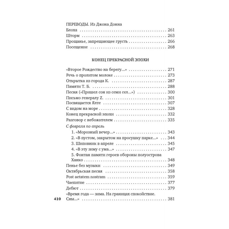 Сборник «Конец прекрасной эпохи», впервые опубликованный в 1977 году, включает стихотворения 1964–1971 годов, написанные Бродским до отъезда из Советского Союза. Среди них такие известные, как «Речь о пролитом молоке», «Посвящается Ялте», «Разговор с небожителем», «Литовский дивертисмент» и другие.