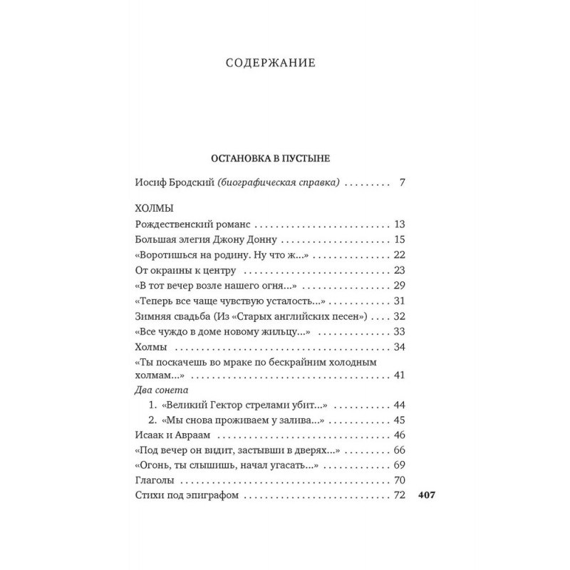 Сборник «Остановка в пустыне» был составлен автором в России. В него вошли стихотворения 1960-х годов («Рождественский романс», «Большая элегия Джону Донну», «А. А. Ахматовой», «В деревне Бог живет не по углам», поэма «Горбунов и Горчаков» и др. произведения). Первоначально, в 1970 году, опубликован в издательстве имени Чехова, а в 1988 году «Ардис» выпустило репринт.