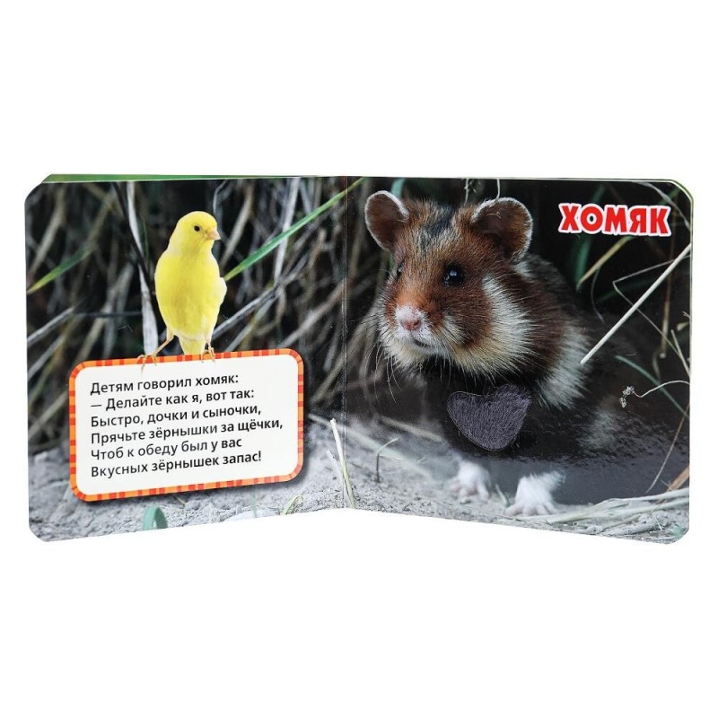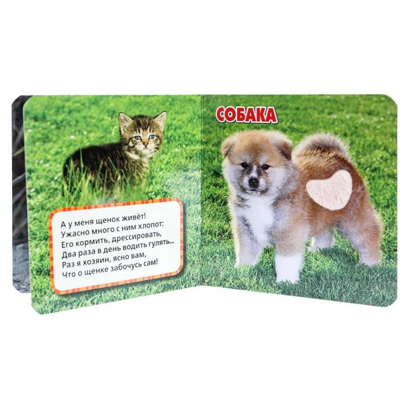 Благодаря тактильным вставкам на обложке и разворотах, картинки на страничках этой книжки оживают, и ребенок сможет их потрогать и погладить. В легкой игровой манере, слушая интересные стихи, маленький любознайка ближе познакомится с домашними животными. Компактный размер издания позволяет взять его с собой в дорогу.