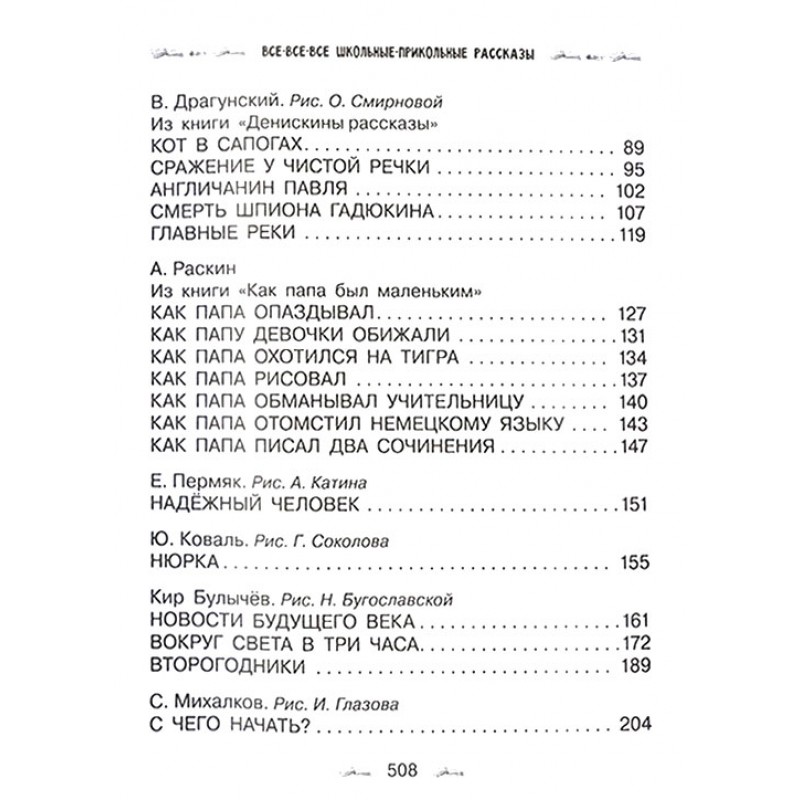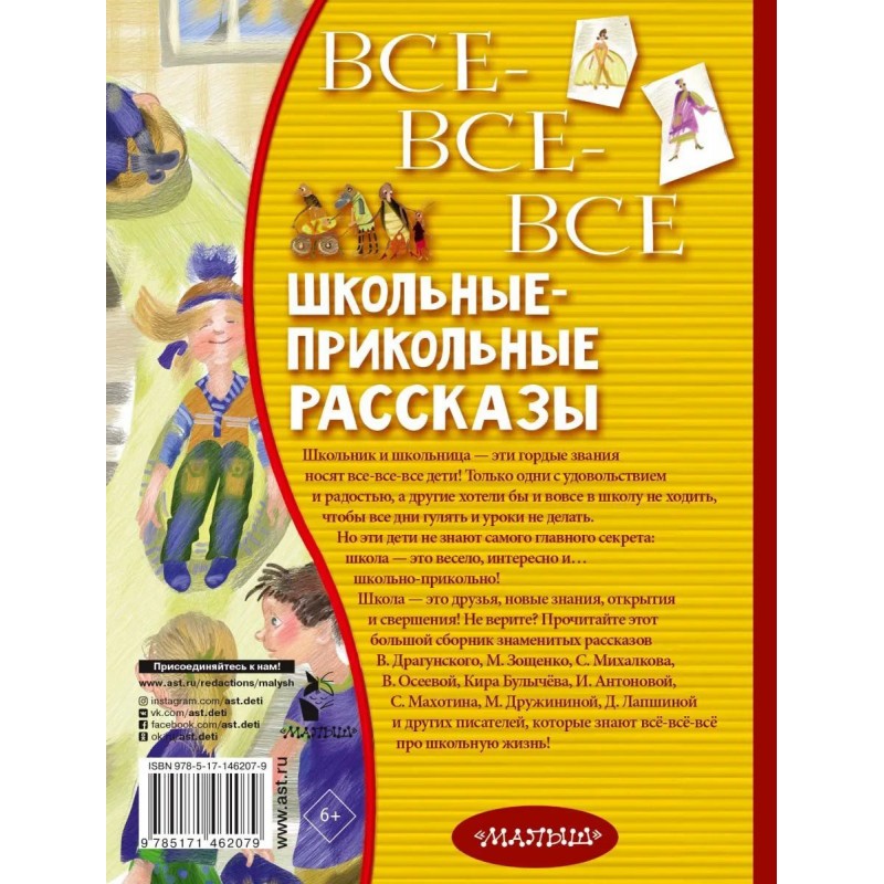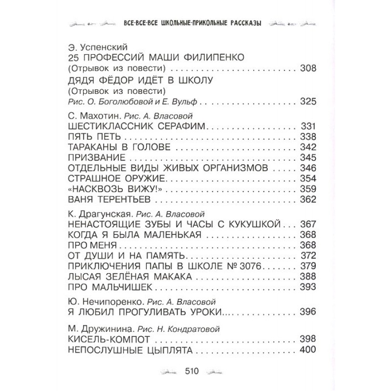 В книгу вошли самые знаменитые произведения о школе В. Драгунского, М. Зощенко, В. Осеевой, Э. Успенского, С. Михалкова, И. Пивоваровой, И. Антоновой, С. Махотина и других бывших школьников и школьниц, которые точно также, как и сегодняшние мальчишки и девчонки, сидели за партами, учили уроки, делали домашние задания и, конечно, веселились от души!