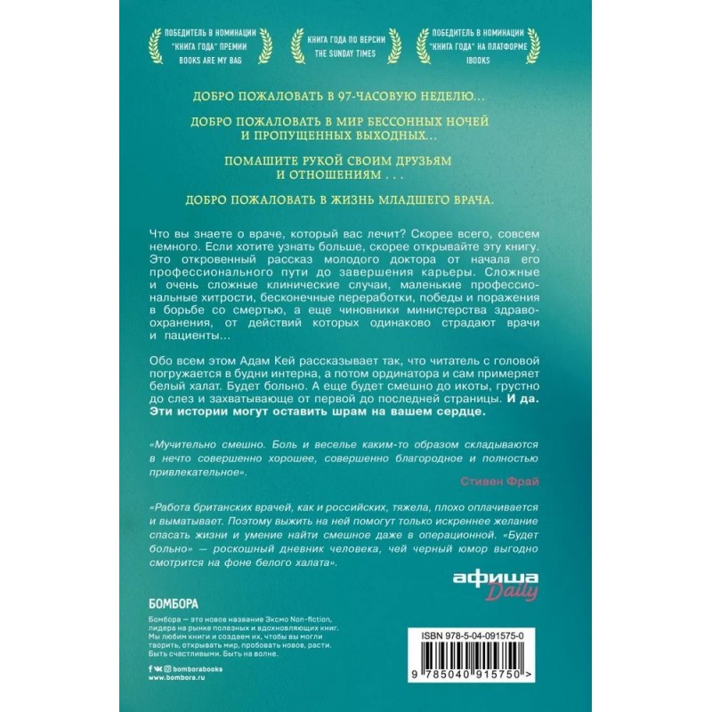 Перед вами предельно честный дневник молодого врача, в котором он описывает изнанку будней в рядовой больнице Великобритании. Иногда истории исключительно смешные, иногда – пронзительно грустные. О чем думает врач, сталкиваясь с нелепой травмой или сложным клиническим случаем? Где найти слова, чтобы объяснить родственникам, что их близкого человека больше нет? И откуда взять силы работать дальше, зная, что непременно будет больно? Автор книги «Будет больно» ищет ответы, шутит, разгадывает медицинские загадки, рассказывает истории своих пациентов и признается, что все-таки, кроме прочного чувства юмора, «у хорошего врача должны быть большое сердце и раздутая аорта, перекачивающая целое море сострадания и доброты».