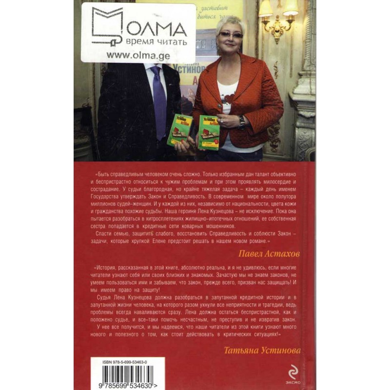 Тема, затронутая в новом романе самой знаковой писательницы современности Татьяны Устиновой и самого известного адвоката Павла Астахова, знакома многим не понаслышке. Наверное, потому, что история, рассказанная в нем, очень серьезная и болезненная для большинства из нас, так или иначе бравших кредиты! Кто-то выбрался из «кредитной ловушки» без потерь, кто-то, напротив, потерял многое — время, деньги, здоровье!.. Судье Лене Кузнецовой предстоит решить судьбу Виктора Малышева и его детей, которые вот-вот могут потерять квартиру, купленную когда-то по ипотеке. Одновременно ее сестра попадает в лапы кредитных мошенников. Лена — судья и должна быть беспристрастна, но ей так хочется помочь Малышеву, со всего маху угодившему разом во все жизненные трагедии и неприятности! Она найдет решение труднейшей головоломки, когда уже почти не останется надежды на примирение и благополучный исход дела... . . . . . . . . . . . . . . . . . . . . . . . .