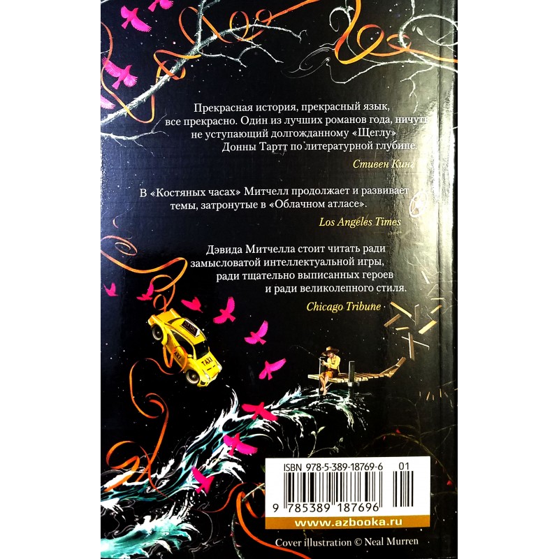 «Прекрасная история, прекрасный язык, все прекрасно, — писал о “Костяных часах” Стивен Кинг. — Один из лучших романов года, ничуть не уступающий долгожданному “Щеглу” Донны Тартт по литературной глубине».