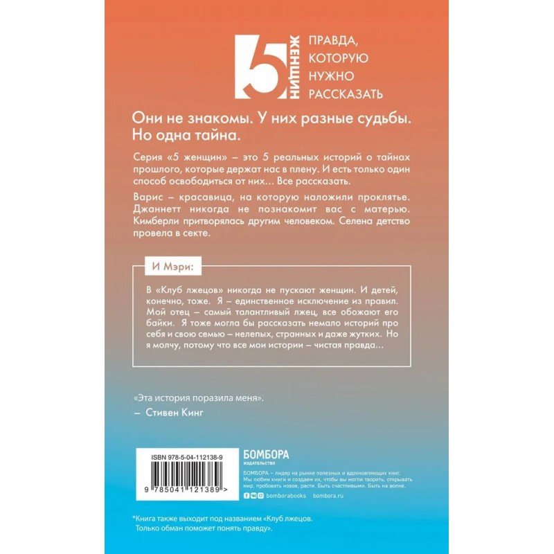 В «Клуб лжецов» никогда не пускают женщин. И детей, конечно, тоже. Я — единственное исключение из правил. Мой отец — самый талантливый лжец, все обожают его байки. Я тоже могла бы рассказать немало историй про себя и свою семью — нелепых, странных и даже жутких. Но я молчу, потому что все мои истории — чистая правда...