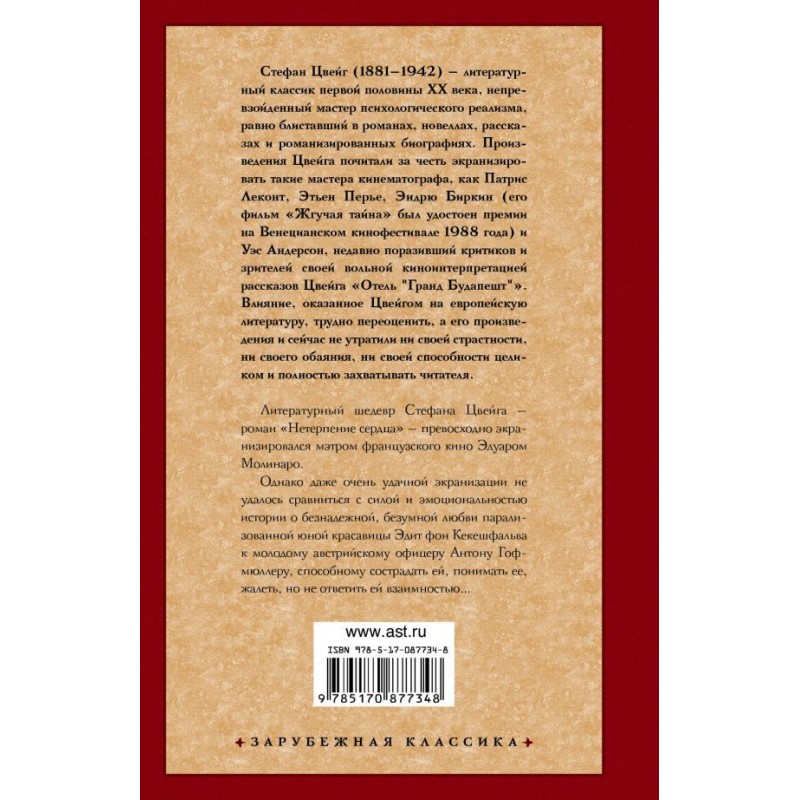 Литературный шедевр Стефана Цвейга — роман «Нетерпение сердца» — превосходно экранизировался мэтром французского кино Эдуаром Молинаро.