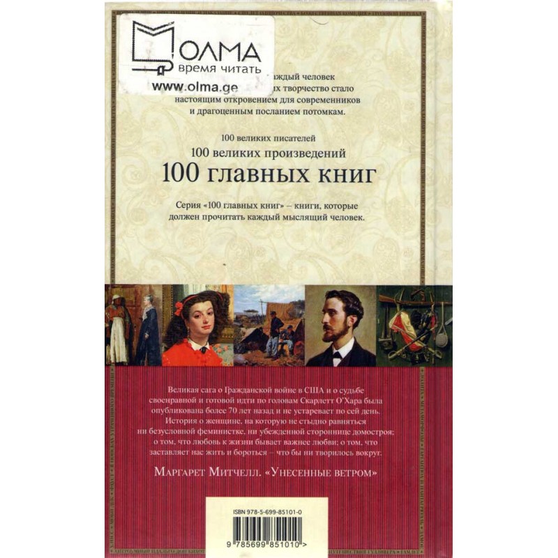 Согласно легенде создание романа "Унесенные ветром" началось с того, как Маргарет Митчелл написала главную фразу последней главы: "Ни одного из любимых ею мужчин Скарлетт так и не смогла понять и вот - потеряла обоих". Последующая работа над произведением продолжалась около десяти лет и потребовала от писательницы огромной самоотдачи и напряженного труда. Стремясь проникнуть в самый дух эпохи, Митчелл кропотливо изучала историю родной Атланты, использовала газеты и журналы середины XIX века. На страницах ее рукописи оживали рассказы очевидцев Гражданской войны и семейные предания. Некоторые сцены Митчелл переписывала по четыре-пять раз, а что касается первой главы, писательницу удовлетворил лишь 60-й вариант! Роман, вышедший весной 1936 года, имел беспрецедентный успех и сразу побил все рекорды по популярности и тиражам во всей истории американской литературы. А одноименная экранизация с Вивьен Ли и Кларком Гейблом в главных ролях завоевала 10 премий "Оскар" и стала одной из самых знаменитых лент в истории мирового кинематографа.