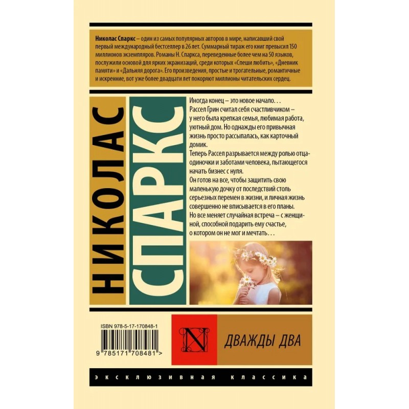 • От автора романов «Спеши любить» и «Дневник памяти». Издание в серии «Эксклюзивная классика» — в удобном формате и привычном оформлении. Еще совсем недавно у Рассела Грина было все — любимая жена, стабильная работа и маленькая дочка. Но в мгновение ока его жизнь рассыпалась словно карточный домик — жена ушла, он потерял работу, и лишь маленькая дочка осталась единственным маяком света посреди царящего хаоса. И теперь Расселу приходится в одиночку воспитывать дочку и пытаться строить новый бизнес с нуля. На личную жизнь времени не остается совсем, но случайная встреча дарит ему надежду, о которой Расс не смел и мечтать…