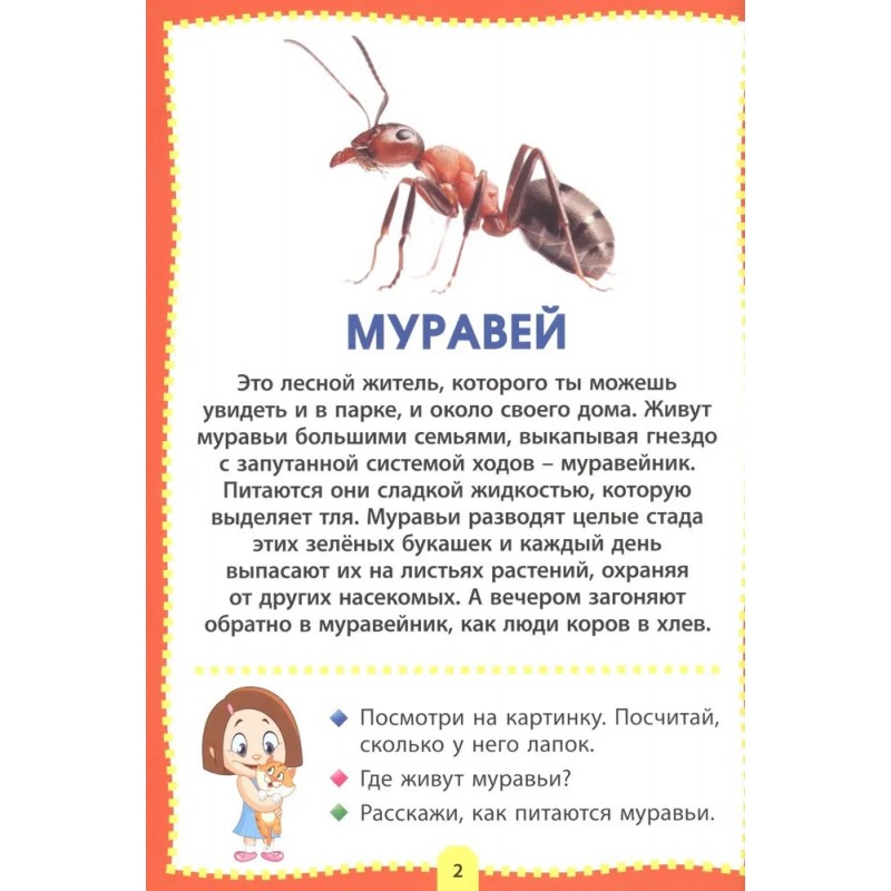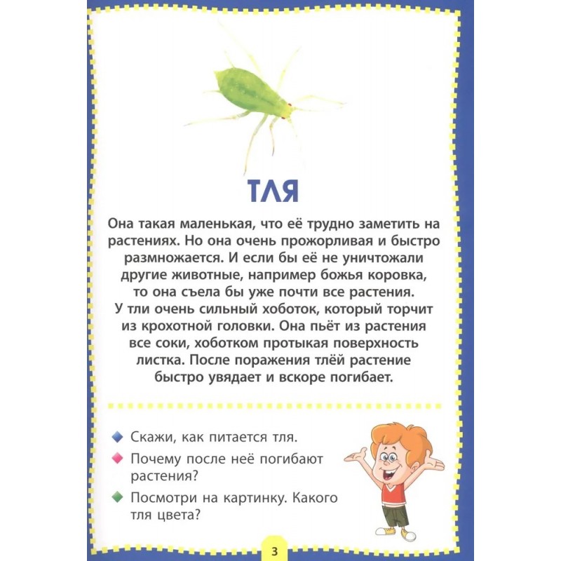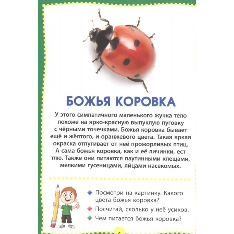 Уважаемые родители! Предлагаем вам развивающую серию для вашего ребёнка, которая познакомит малыша с окружающим миром, а яркие фотографии и реалистичные картинки помогут ему в этом. Кроме того, в игровой форме «вопрос-ответ» вы сможете закрепить у ребёнка полученные знания. В книге «Насекомые» дети смогут узнать и запомнить самых разных насекомых, лесных и водных, городских и садовых, полезных и вредных: красивых бабочек и ярких жучков, неприметного палочника и поющего сверчка, удивительных водомерку и светлячка, трудолюбивого муравья и паразита-овода.