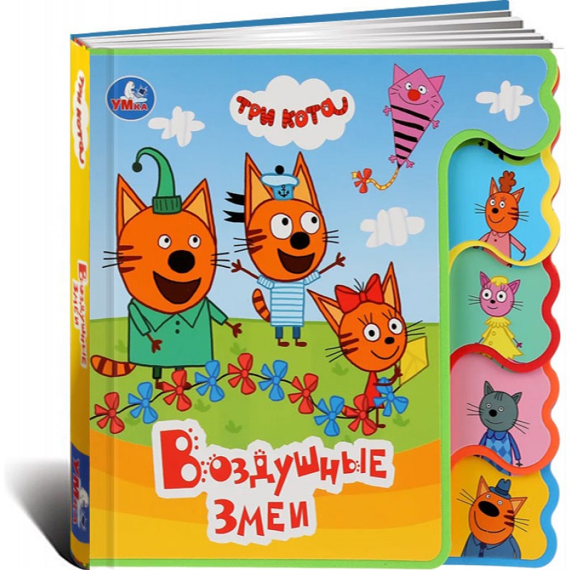 Книжка-игрушка с вырубкой-закладками «Три кота. Воздушные змеи» ТМ «УМка» 4 в 1:
