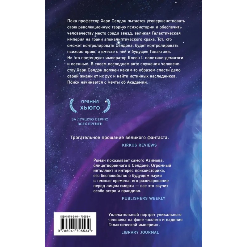 Пока профессор Хари Селдон пытается усовершенствовать свою революционную теорию психоистории и обеспечить человечеству место среди звезд, великая Галактическая империя на грани апокалиптического краха. Тот, кто сможет контролировать Селдона, будет контролировать психоисторию, а вместе с ней и будущее Галактики. На это претендует император Клеон I, политики-демагоги и военные. В своем последнем акте служения человечеству Хари Селдон должен каким-то образом спасти дело своей жизни от их рук и найти истинных наследников. Поиск начинается с мечты об Академии.