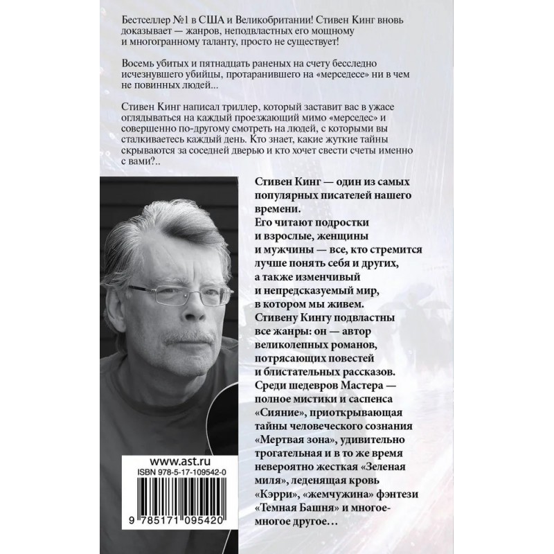 Стивен Кинг написал триллер, который заставит вас в ужасе оглядываться на каждый проезжающий мимо "мерседес" и совершенно по-другому смотреть на людей, с которыми вы сталкиваетесь каждый день.
