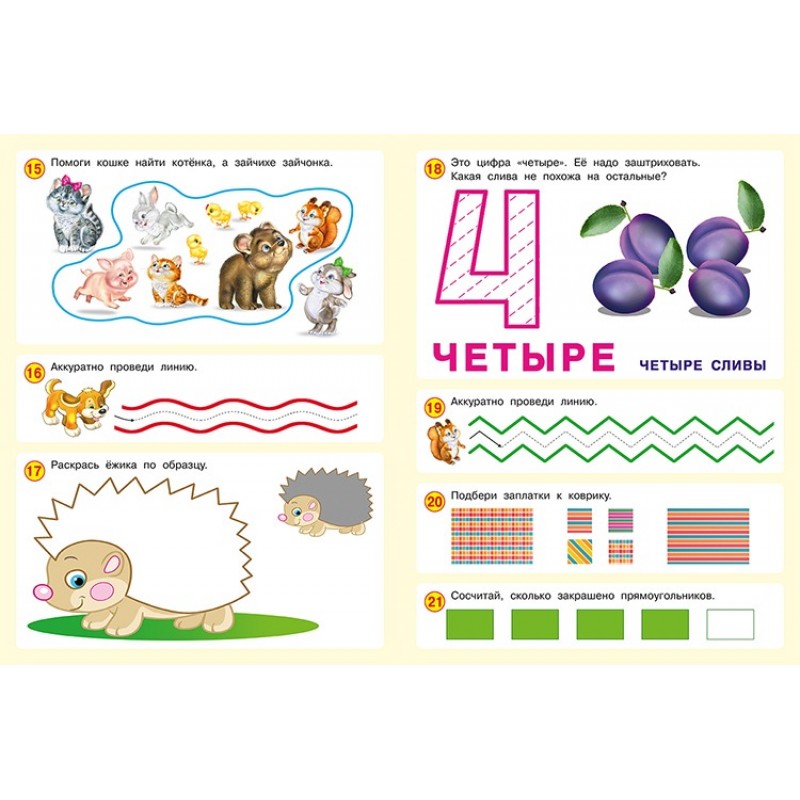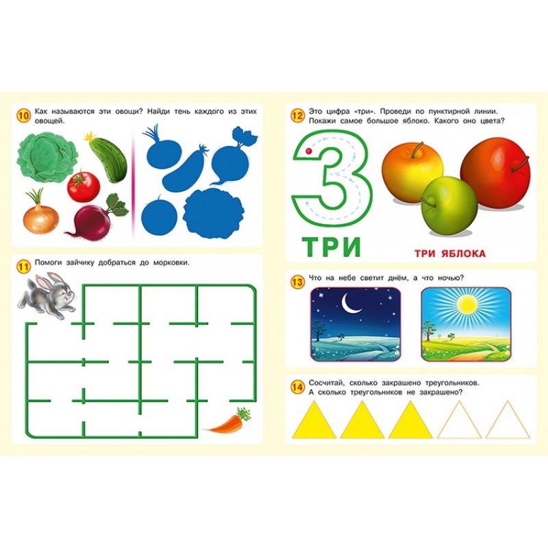 Пособие "50 развивающих заданий 3 года" из серии "50 развивающих заданий" подойдет для мальчиков и девочек, которые только учатся держать ручку в руках и им нужно развивать мелкую моторику и тренировать маленькие пальчики, а также тем, кто уже имеет навык письма и счета. В сборнике много заданий на раскрашивание, поиск недостающих картинок и отличий. А также прописи, азбука, буквы, геометрические фигуры и формы, блоки с изучением цифр, цветов, времен года, животных, ребусы, ребенок научится считать до 10 и многое другое. Все задания распределены от простого к сложному. Бумага в альбоме качественная, белая, можно писать ручкой и карандашом, стирать ластиком. В конце каждой книжки есть ответы.