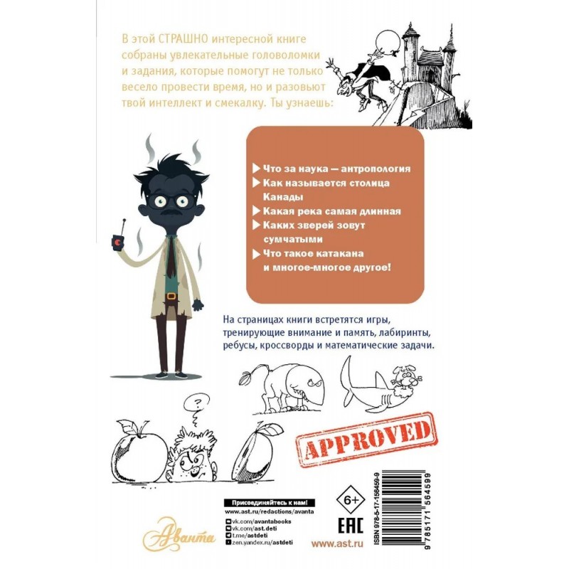 Собранные в этой книге головоломки и игры позволят не только весело провести время, но также развить логику, память, внимательность, сообразительность, навыки устного счета и воображение. Здесь есть задачи на знание географии и истории, математики, русского языка и биологии. А еще разнообразные задания помогут увеличить словарный запас и запомнить новые интересные понятия. Вы узнаете, что такое катакана, пармезан и экстерьер, какое животное оказалось в чайнике в сказке "Алиса в стране чудес", какой породы был Мухтар, как называется столица Бразилии, что изучает сейсмология, а что — антропология и еще многое-многое другое! Для среднего школьного возраста.