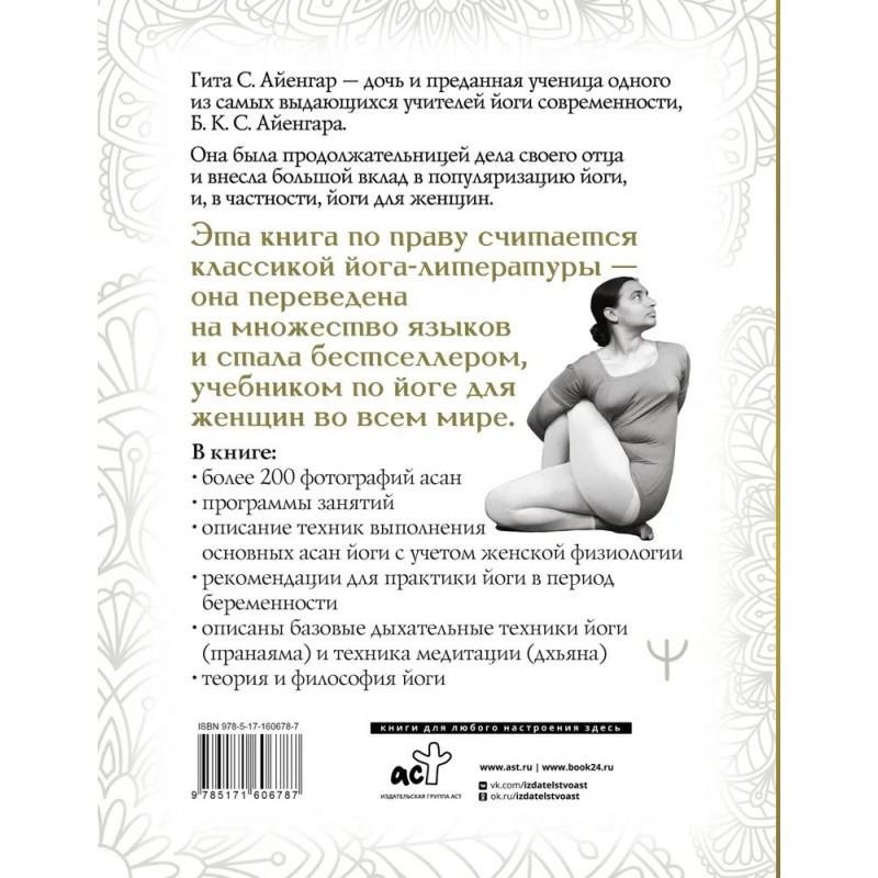 Гита С. Айенгар — авторитетный мастер йоги и дочь одного из самых известных и уважаемых учителей йоги современности, Б. К. С. Айенгара, написала эту книгу специально для женщин.