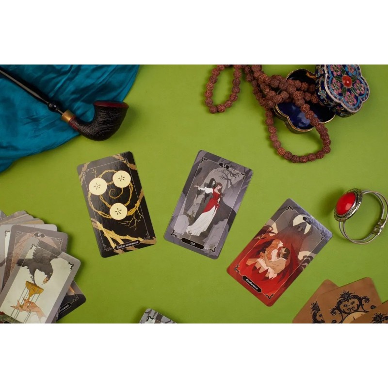• 78 карт, завораживающие и таинственные иллюстрации для которых созданы художницей Эбигейл Ларсон.