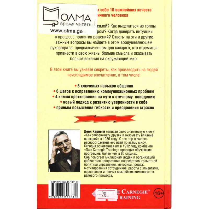 Приводился пять ключевых навыков общения с людьми и методы решения коммуникационных проблем, рассматриваются новые подходы к развитию уверенности в себе, также приемы повышения гибкости и преодоления страхов.