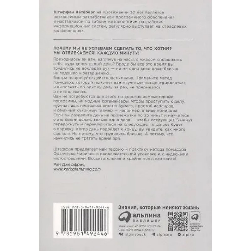 "Штаффан предлагает нам теорию и практику метода помидора Франческо Чирилло в привлекательной упаковке и с чудесными иллюстрациями. Восхитительная и крайне полезная книга!"