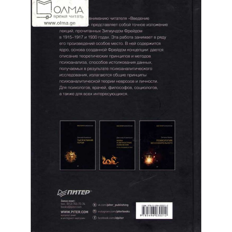 Предлагаемое вниманию читателя "Введение в психоанализ" представляет собой точное изложение лекций, прочитанных Зигмундом Фрейдом в 1915-1917 и 1930 годах. Эта работа занимает в ряду его произведений особое место. В ней содержится ядро, основа созданной Фрейдом концепции: дается описание теоретических принципов и методов психоанализа, способов истолкования данных, получаемых в результате психоаналитического исследования, излагаются общие принципы психоаналитической теории неврозов и личности.