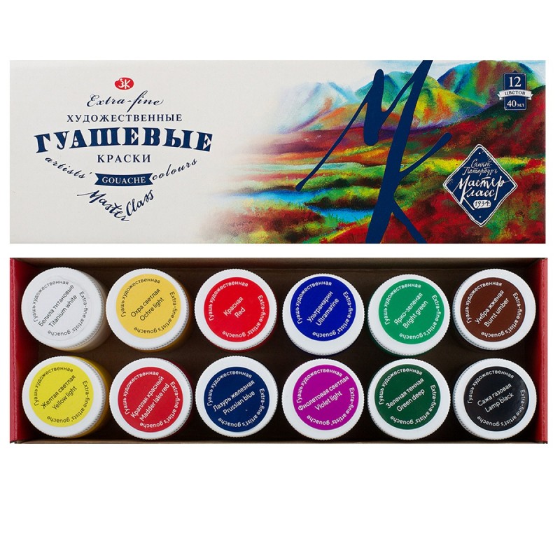 Гуашь художественная, 40 мл, цвет 12 цветов