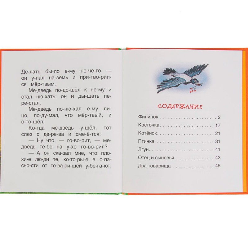 Книга «Детям» предназначена для обучения слоговому чтению. В эту замечательную книгу вошли короткие рассказы и сказки Льва Толстого: "Филипок", "Косточка", "Котенок", "Птичка", "Лгун", "Отец и сыновья", "Два товарища". Эти несложные художественные тексты, отобранные специалистами по подготовке к школе и разбитые по слогам, крупный шрифт и яркие иллюстрации сделают первое самостоятельное чтение легким и увлекательным. Книга вышла в серии "Читаем по слогам". Издание снабжено красочными иллюстрациями Е. Здорновой, которые сделают процесс чтения еще более интересным и увлекательным. Чтение способствует развитию образного мышления и фантазии, побуждает к действиям, учить этикету и дает первые базовые понятия и сведения об окружающем мире.