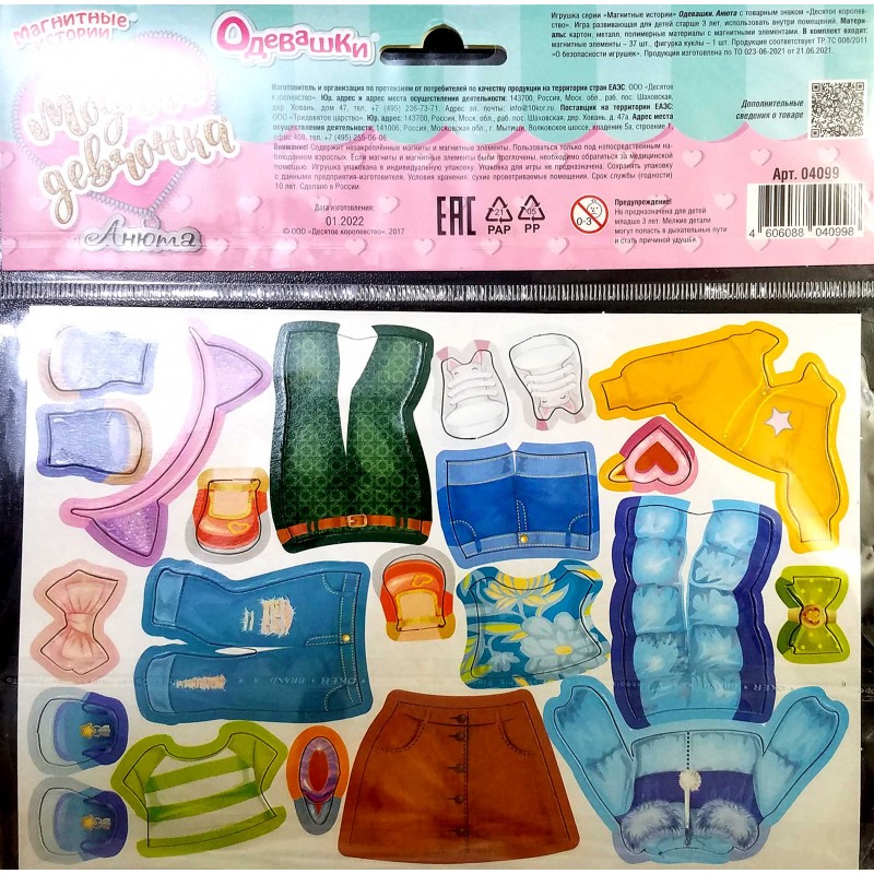 Магнитная игра «Одевашки. Анюта» познакомит маленьких модниц с различными предметами одежды и аксессуарами, а также научит составлять законченный и красивый образ на любой случай!