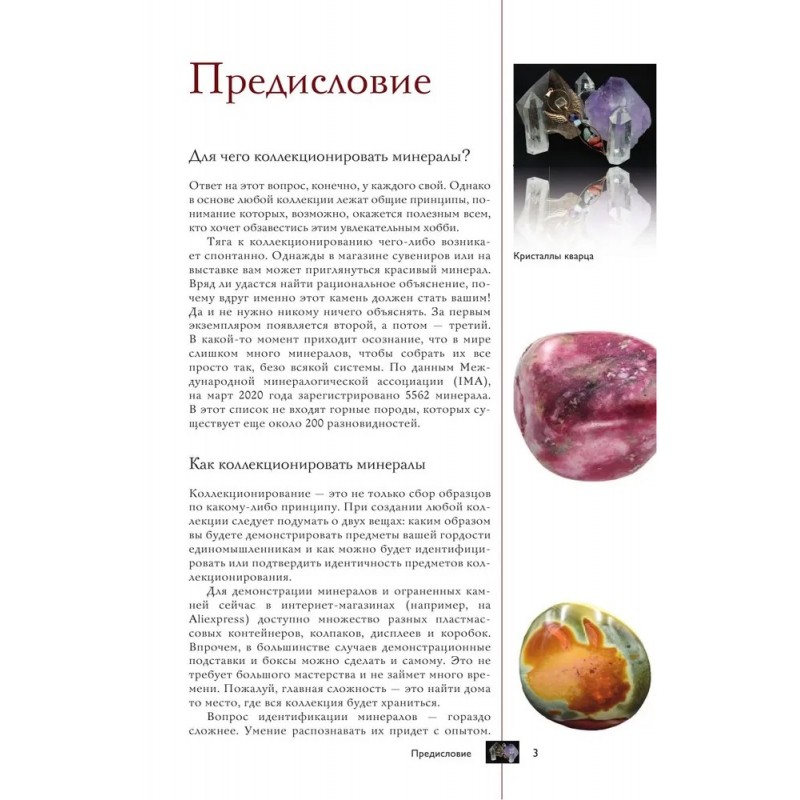 Этот иллюстрированный гид познакомит вас с историей и свойствами большинства коллекционных минералов. На страницах гида вы найдете информацию об их названиях, твердости, месторождении, метафизических свойствах. Дипломированный геммолог, член Российского минералогического общества Алексей Лагутенков приводит массу интересных фактов о минералах и рассказывает, как собрать из них свою уникальную коллекцию. Страницы гида дополнены уникальными 3D-картинками — они станут вашим проводником в мир красивейших коллекционных минералов и позволят вам воочию увидеть их.