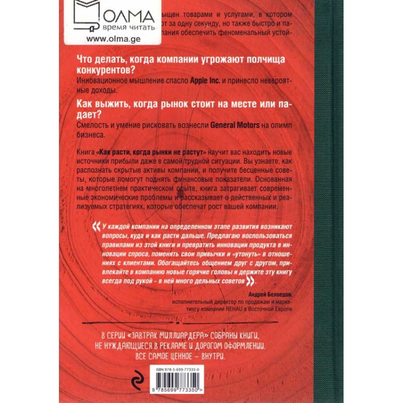 Книга «Как расти, когда рынки не растут» научит вас находить новые источники прибыли даже в самой трудной ситуации. Вы узнаете, как распознать скрытые активы компании, и получите бесценные советы, которые помогут поднять финансовые показатели. Основанная на многолетнем практическом опыте, книга затрагивает современные экономические проблемы и рассказывает о действенных и реализуемых стратегиях, которые обеспечат рост вашей компании.