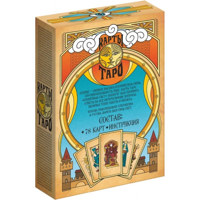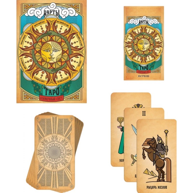 Солнце — символ высшей космической силы, противоположность Луне. Карты Таро «Солнечный свет» помогут вам получить ответы на все интересующие вопросы, включая тему работы и бизнеса. Колода готова откровенно дать вам совет. К картам Таро прилагается инструкция, благодаря которой даже начинающий таролог разберётся в хитросплетениях судьбы.