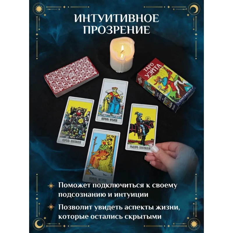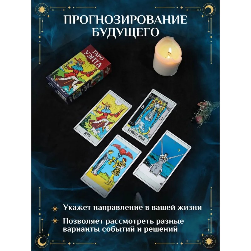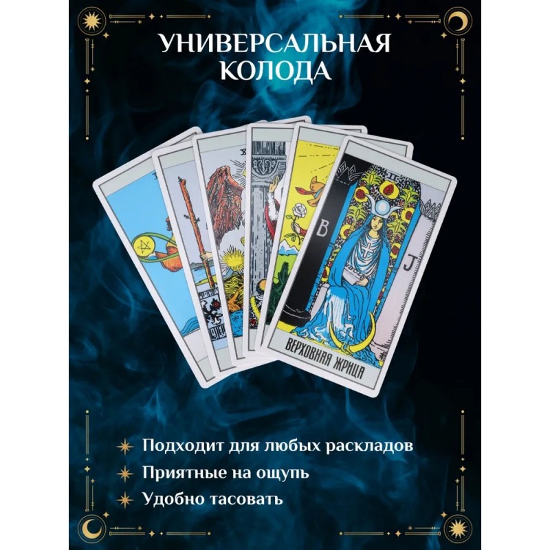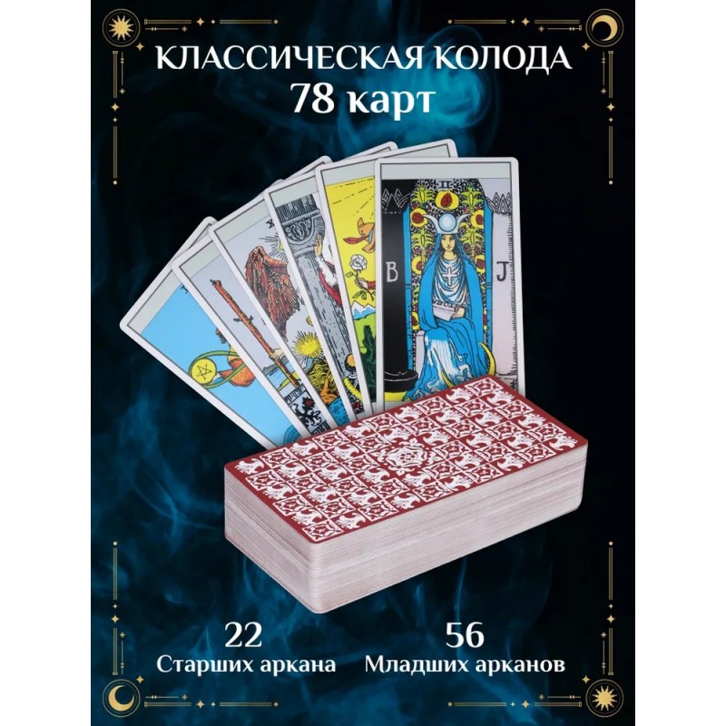 Набор таро прекрасно подойдёт как для начинающих исследователей ТАРО, так и для опытных практиков. Таро карты упакованы аккуратно вместе с удобным мешочком, что делает их транспортировку простой и безопасной. Это также поможет сохранить эффективность и энергию вашего маленького мистического инструмента. Лёгкий доступ к колоде позволит вам проводить расклады где угодно, создавая особую атмосферу для гадания. При помощи гадальных карт Таро можно разобраться в своём прошлом, увидеть со стороны ситуацию в настоящем, заглянуть в будущее, предсказать события, которые могут повлиять на судьбу. В наборе: 22 старших аркана, 56 младших, инструкция по гаданию и предсказанию. Возраст: 18+