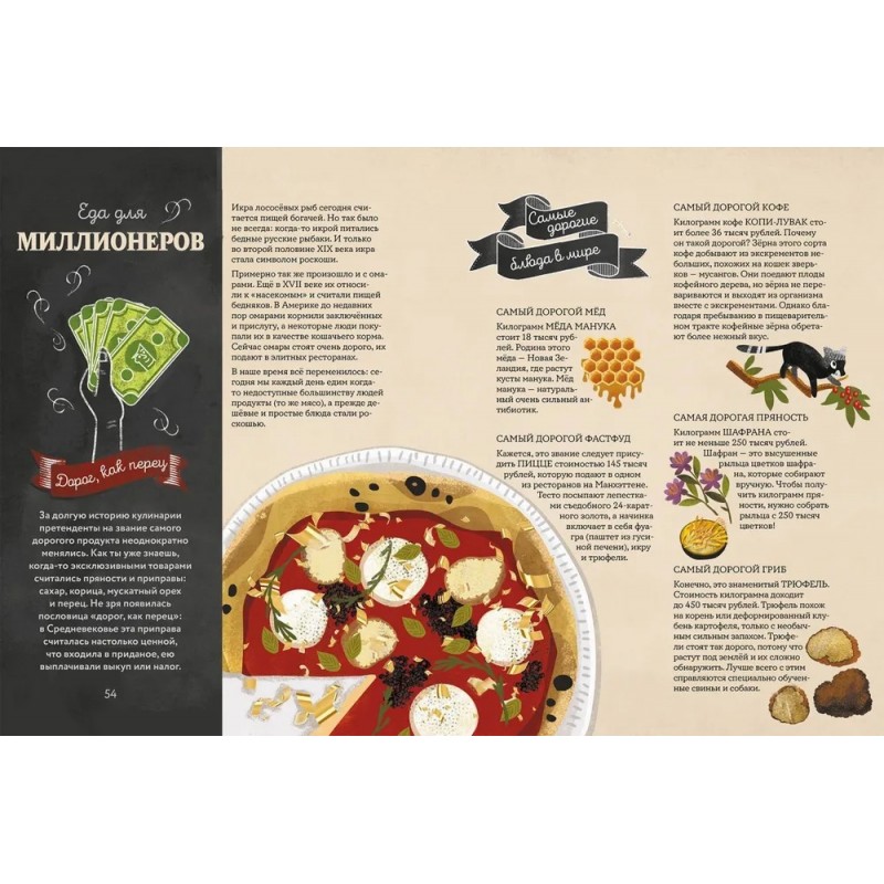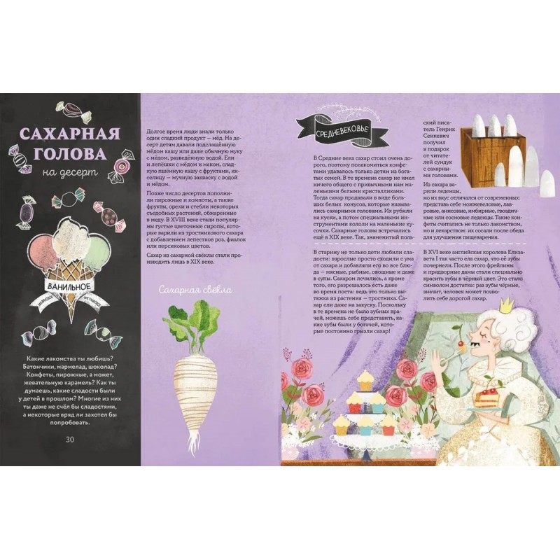 Скорее открывай книгу! Ты отправишься в самое настоящее кулинарное путешествие сквозь века и увидишь, чем питались люди в древности, как готовили себе еду, как появились привычные нам продукты, какие кулинарные предпочтения существуют у разных людей, что едят в космосе и… многое другое.