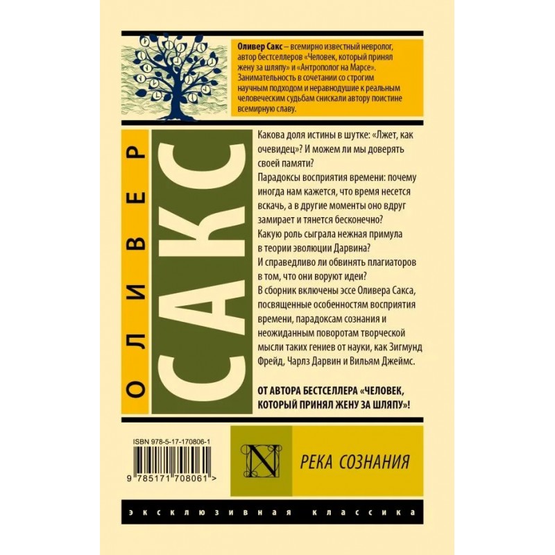 В сборник включены эссе Оливера Сакса, посвященные особенностям восприятия времени, парадоксам сознания и неожиданным поворотам творческой мысли таких гениев от науки, как Зигмунд Фрейд, Чарлз Дарвин и Вильям Джеймс.