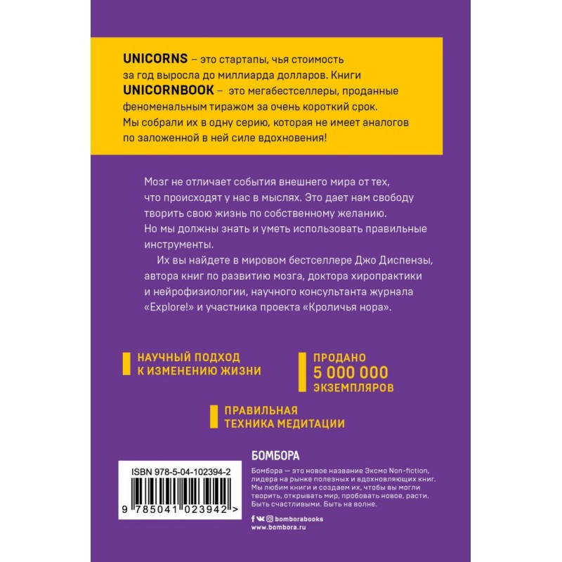 Доктор Диспенза – профессор нейрохимии и нейробиологии, руководитель клиники интегрированной медицины. Автор мировых бестселлеров по развитию мозга. Джо Диспенза выступает с мастер-классами в 26 странах, на 5 континентах. Он обучил тысячи людей, как перенастроить свой мозг и тело, чтобы улучшить здоровье и жизнь. Диспенза - первый автор, которому удалось понятно, доступно и на научном языке объяснить работу подсознания.