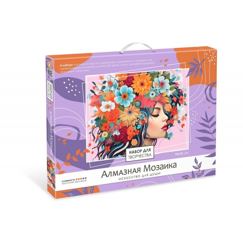 Алмазная мозаика на подрамнике. Девушка в цветах