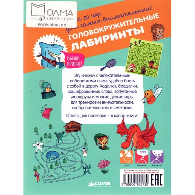 Никто не хочет учиться летом! Понимаем, очень сложно заставить малыша «зубрить» правила, прописывать буковки и учить счет. Уверяем, больше никаких слез! Мы за спокойствие малышей, мам, пап, бабушек и дедушек (ведь вас всех надо беречь!). Смело вооружайтесь карандашами и открывайте удивительную активити-тетрадку головокружительных (в буквальном смысле!) лабиринтов. Внутри ходилки, бродилки, шифры, запутанные маршруты на логику, сообразительность и внимание.