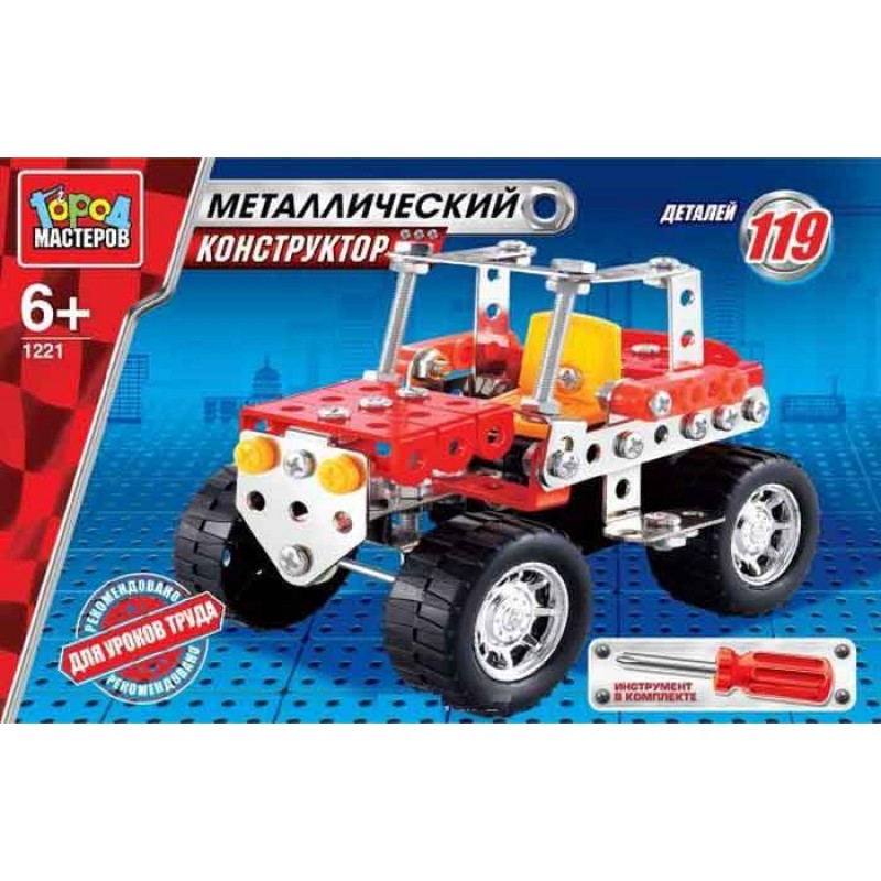 Для того чтобы ребенок научился созидать, полезным подарком для него станет конструктор от торгового бренда "Город мастеров", состоящий из 119 металлических деталей, отвертки и соединительных крепежных элементов. Следуя инструкции, мальчик легко сможет собрать джип, который станет превосходным дополнением игрушечного гаража.В процессе сборки ребенок будет развивать пальчики и мелкую моторику рук, он сможет пофантазировать, придумывая увлекательный сюжет с полученной игрушкой, а также потренирует логическое мышление и умственные способности, правильно соединяя один элемент с другим.