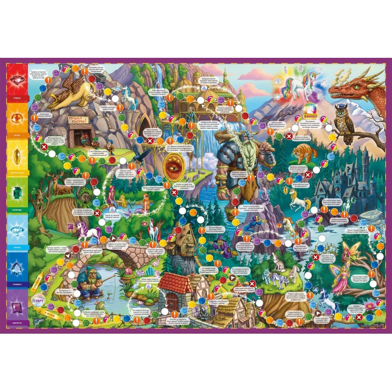 «Волшебный мир единорогов» не просто настольная игра-ходилка - это дверь в сказочный мир! Теперь ребенок может легко попасть в страну единорогов и изучить все ее тайны. Что случилось в заколдованном лесу? Почему над ним больше нет радуги? Как спасти волшебный мир и заколдовать дракона? Игра интригует на каждом ходу. Яркие и интересные иллюстрации поля можно рассматривать часами. Плюс в дополнение, викторина и задания. Все это в одной игре.