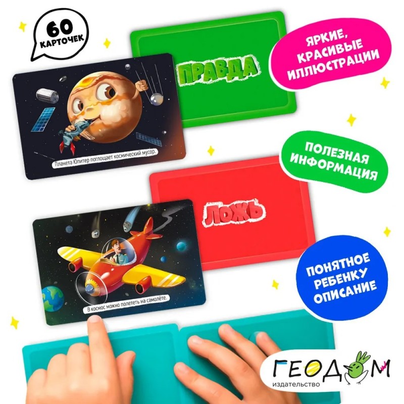 Игра карточная. Серия Правда-ложь. Космос. 60 карточек. 8х12 см. ГЕОДОМ