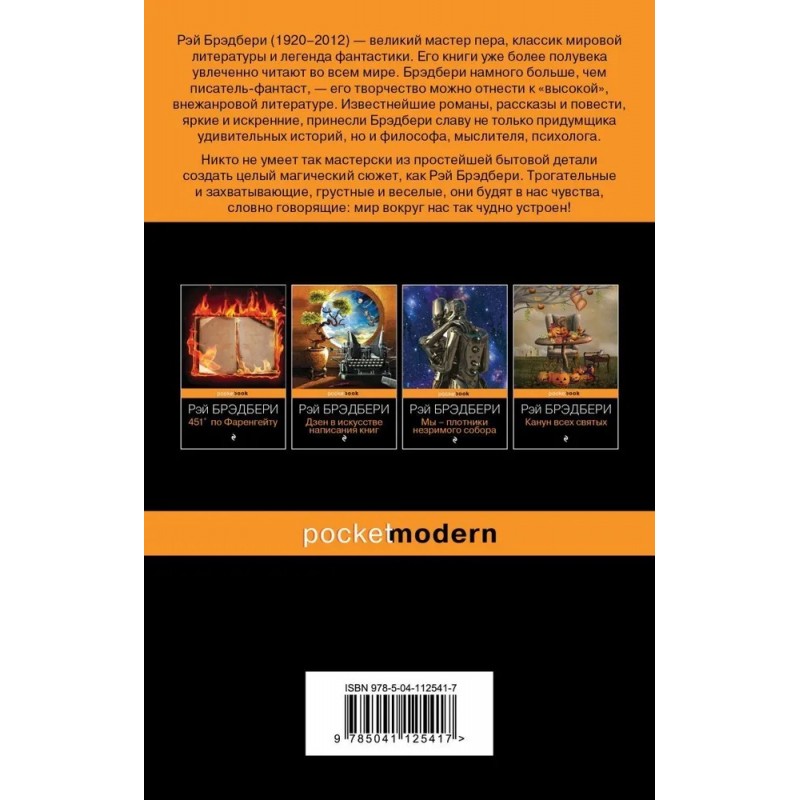 Никто так мастерски не умеет из простейшей бытовой детали создать целый магический сюжет, как Рэй Брэдбери. Трогательные и захватывающие, грустные и веселые, они будят в нас чувства, словно говорящие: мир вокруг нас так чудно устроен! Устройство для уничтожения мусора обнаруживает незаурядный аппетит... Торговец новенькими «Студебеккерами» скрывает лицо под черным капюшоном... Киностудию маскируют под авиазавод, а авиазавод — под киностудию в ожидании истошного крика «Банзай!»... Об этом и многом другом — в сборнике рассказов выдающегося мастера чудес и романтики Рэя Брэдбери.