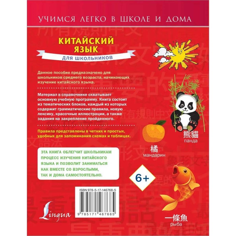 Эта книга облегчит школьникам процесс изучения китайского языка и позволит заниматься как вместе со взрослыми, так и дома самостоятельно.