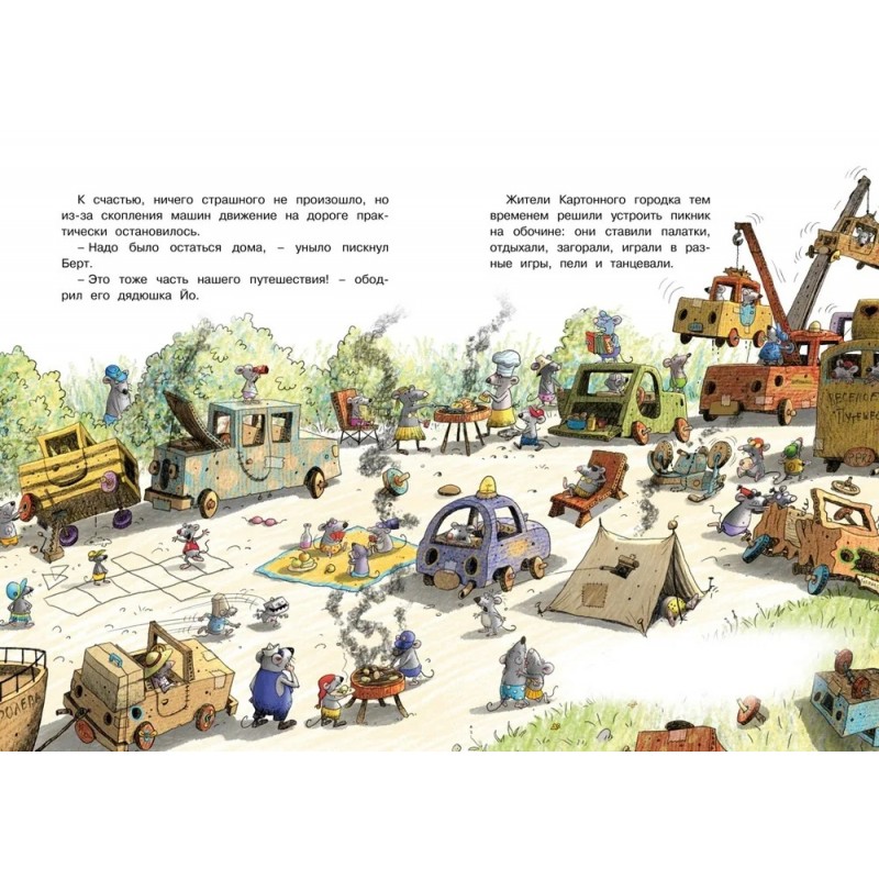 «Сказки Картонного городка» – это весёлые истории о самом удивительном, самом необыкновенном городке на свете. Здесь всё сделано из картона – дома, машины, самолёты, даже корабли и космические ракеты. А живёт-поживает в этом городке забавный мышиный народ, с которым непременно стоит познакомиться! Наступило лето, и многие жители Картонного городка собираются в отпуск. Семейство Папмайеров тоже отправляется на юг. Его глава дядюшка Йо, изобретатель и мастер на все лапы, специально для поездки даже сконструировал корабль. Как же здорово будет на нём рассекать морские волны! А ещё он придумал автомат для изготовления мороженого. В жару это лакомство будет очень кстати. Казалось, мышек ждёт просто сказочный отдых...